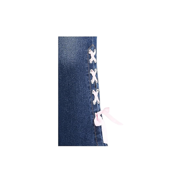 • Features: Bow decor, flare leg, bell bottom, y2k style, lace up side, jeans for girls