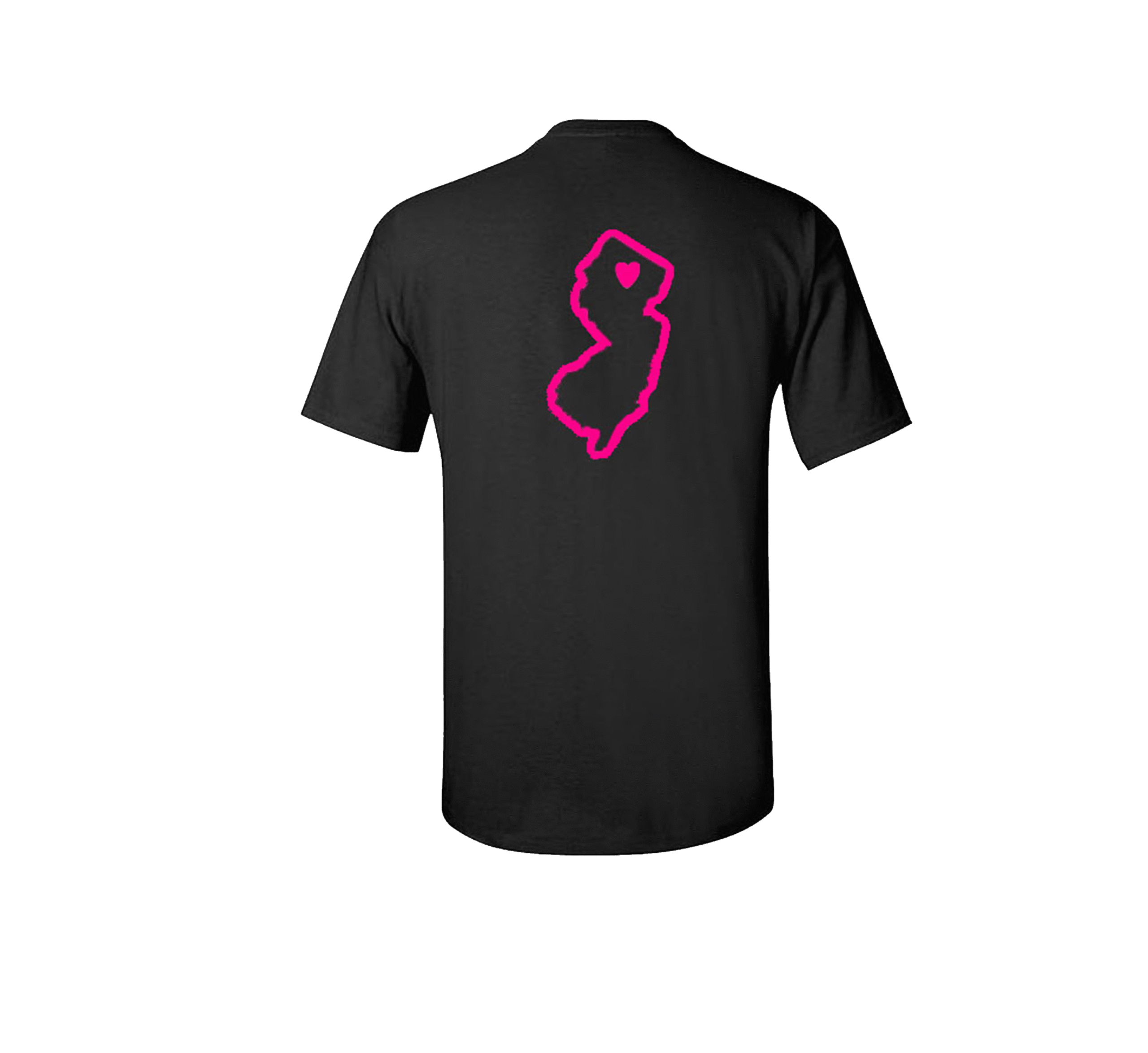 This premium black tee features a bold IOWA Wrestling graphic in pink and white on the front, paired with a New Jersey state outline and heart design on the back. Made from soft and breathable fabric, it’s perfect for athletes, fans, and casual wear.