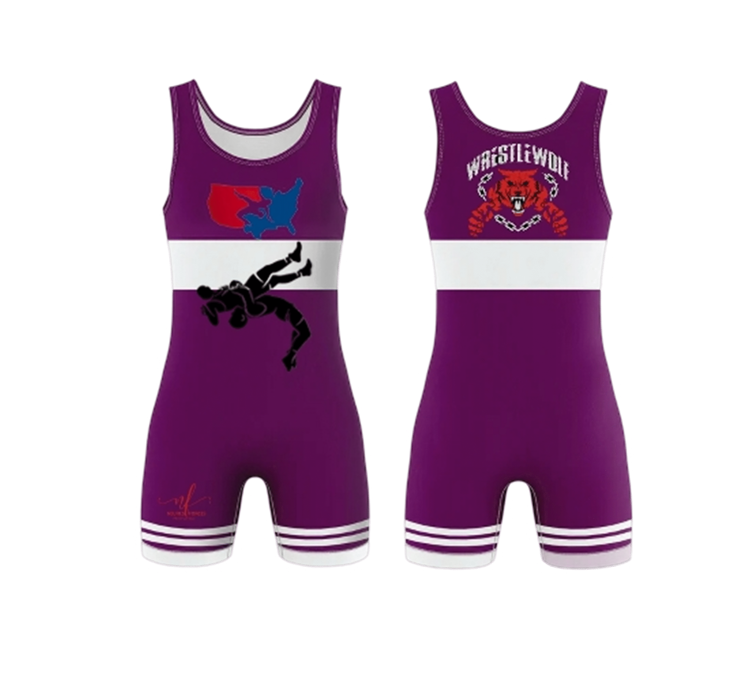 Featuring bold graphics including a WrestleWolf logo, USA wrestling motif, and athlete silhouette, this singlet combines power, performance, and style. Crafted with premium stretch fabric, it delivers durability, flexibility, and comfort for intense matches and training.