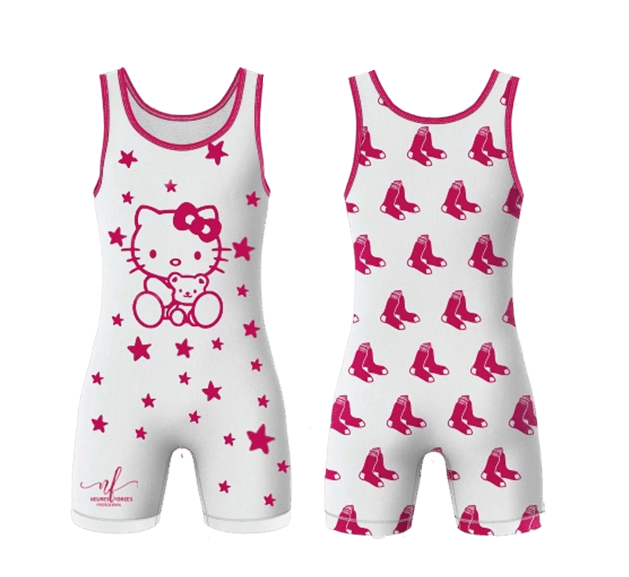 Designed with a white base and bold pink cartoon & star patterns, this singlet combines fashion with functionality. Made from premium stretch fabric, it ensures comfort, flexibility, and durability during training, competitions, or fitness sessions.